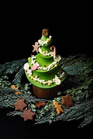 クリスマススイーツでは、大きなツリー型の「クリスマスツリーチョコレート」に注目。ホワイトチョコレートの雪化粧、金箔の星型オーナメント、パールクラッカンなどで華やかにデコレーションしたツリーの中には、スパイス香るジンジャー&シナモンクッキーを忍ばせている。幹部分はメープルシュトーレンとなっているのもポイントだ。