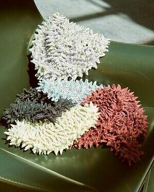 初のコラボレーションとなる今回は、京都の絞り染め技法を取り入れた「ブンザブロウ」のツンツンとしたテクスチャーのバッグに、ミューラルの2025年秋冬コレクションのオリジナル刺繍柄をプリントしたアイテムを展開。アイボリーやラベンダー、ボルドーなどのメインカラーに淡いトーンの刺繍柄を重ねることで、ニュアンスのある表情に仕上げている。