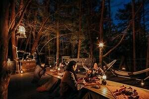 また、21時以降、あたりが真っ暗になる頃には、日替わりの生演奏が始まる。アコースティックギターや、木の温かな響きが特徴のバラフォンが奏でる音色が静かな森に広がり、しっとりとした夜のひと時へと誘う。