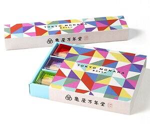 「東京もなか」は、和菓子屋ならではのオリジナル“和風ボンボンチョコ”。見た目も中身もカラフルな、キューブ型が特徴の最中となっている。