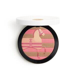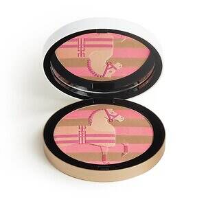 「プードル ロカバール」は、メゾンを象徴するモチーフで、競走馬が着用する伝統的な青と赤のストライプ柄のラグの“ロカバール”を描き出した新作フェイスパウダー。絶妙な色合いのストライプに、繊細なタッチで馬を描いている。