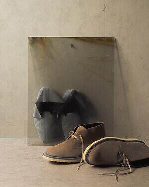 2023年以来3度目となる今回のコラボレーションでは、リーガルの定番サドルシューズの木型をベースにしたチャッカブーツを、クラシカルなサンドベージュカラーで展開。アッパーには、国内有数のタンナー「山陽」が鞣したしなやかな牛革を使用しているため、履き込むほどに足に心地よく馴染む。