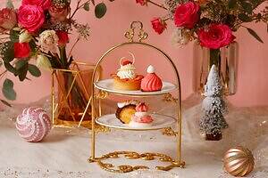 ザ ストリングス 表参道は、「ピンクフル・ホリデーアフタヌーンティー」を2025年11月19日(水)から12月25日(木)までの期間限定で提供する。