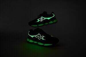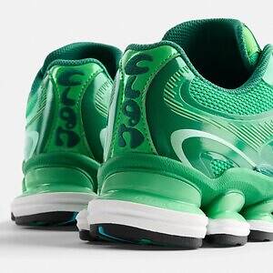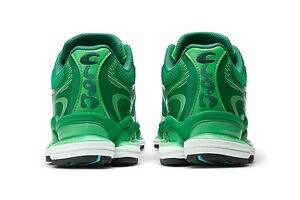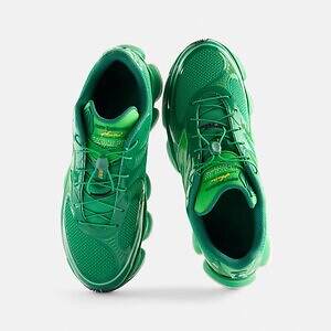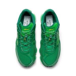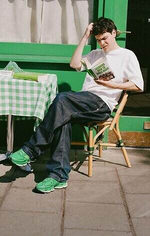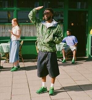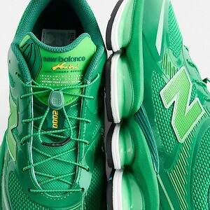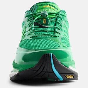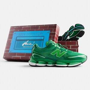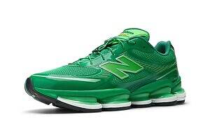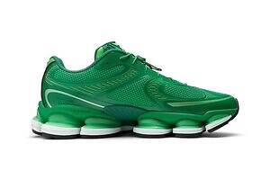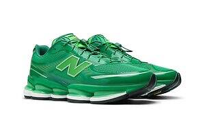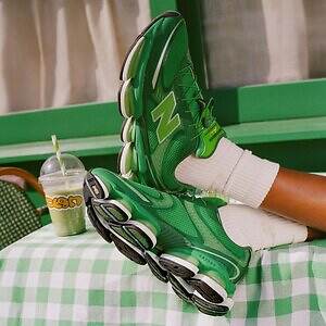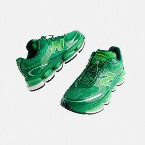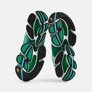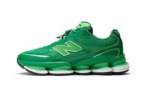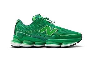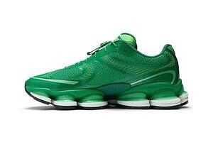 今回展開するスニーカーでは、ニューバランスのランニングシューズ「アブゾーブ 2000」をベースに、アミーネの出身地であるアメリカ・ポートランドの図書館をイメージした鮮やかなグリーンカラーを採用。メッシュアッパーはもちろん、シューレースやサイドの”N”ロゴ、彫刻的なデザインのミッドソールまでをグリーンで統一し、唯一無二の存在感に仕上げている。