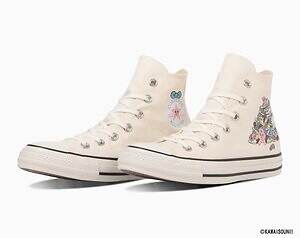 2025年8月に続き第2弾となる今回のコラボレーションでは、「おぱんちゅうさぎ」と「んぽちゃむ」を主役にしたスニーカーを展開。「オールスター」のハイカットシューズに、描き下ろしのイラストを散りばめた特別なデザインで展開する。