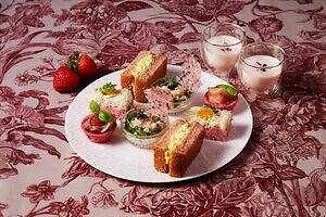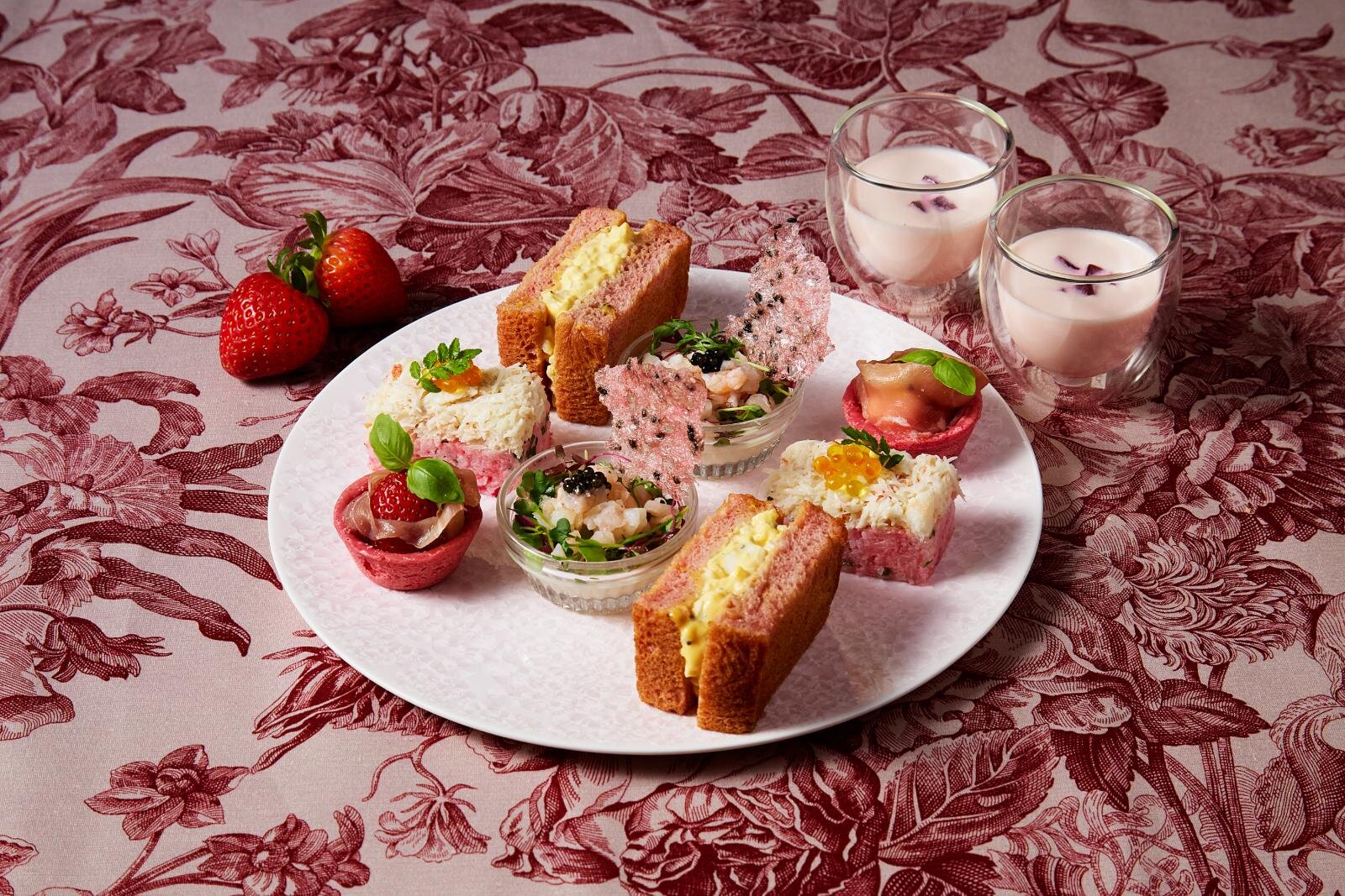 ピンク色のセイボリーも、あわせてチェック。「カリフラワーとビーツのスープ」をはじめ、「いちごとモッツアレラと生ハム 25年バルサミコとビーツタルト」や「ベリーローフとトリュフ卵サンド」など、ボリューム満点なメニューを堪能することができる。