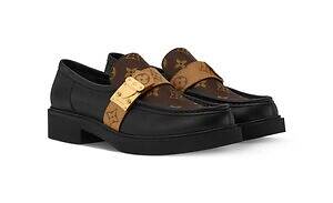 「アカデミー ローファー」は、アッパーの甲部分にモノグラム・キャンバスをあしらったレザーシューズだ。ストラップにはモノグラム・リバース キャンバスを採用。トランクの留め具に着想したゴールドカラーのメタルパーツを配し、印象的なデザインに仕上げている。すっきりとしたハンサムなフォルムも魅力だ。