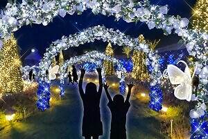 2025年のイルミネーションのテーマは「蝶と旅するファンタジーガーデン」。動植物がモチーフのイルミネーションに、蝶が舞う幻想的な光景が広がるファンタジックな世界観に没入できる。