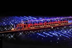 園内にある汽車に乗って、イルミネーションを眺める“夜の鉄道の旅”も「ヒカリウム2025」の見どころ。入場ゲートと施設の一番奥に位置する「ひつじのショーンファームガーデン」近くを結ぶので、徒歩と“夜の鉄道の旅”で施設内を往復するのがおすすめだ。