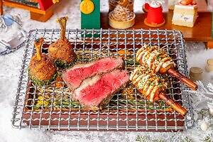 ヒルトン東京「クリスマス ミートアフタヌーン」は、“クリスマスホームパーティー”に着想を得たアフタヌーンティー。華やかなドールハウス型スタンドに、“肉”が主役のメニューを盛り込み、クリスマスシーズンを彩る特別なひと時を演出する。
