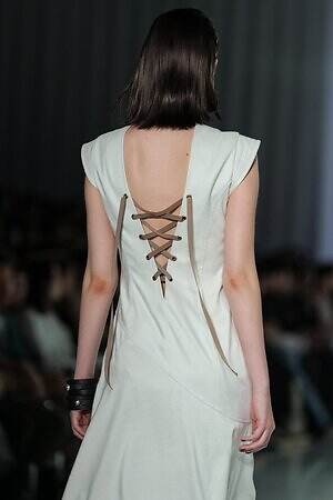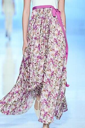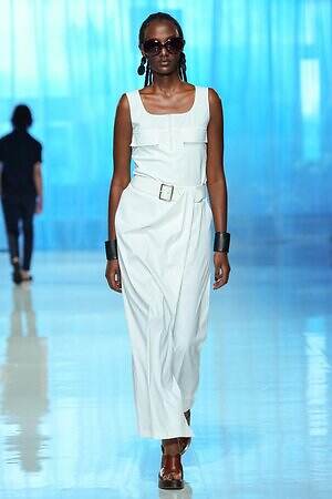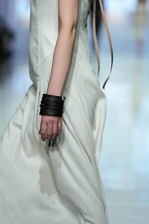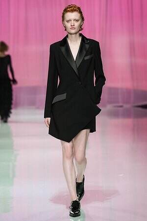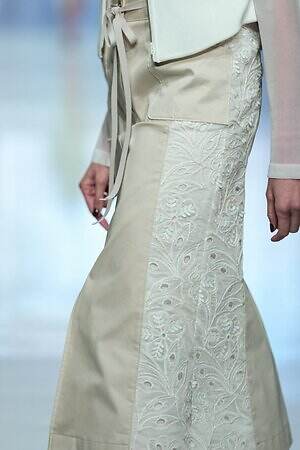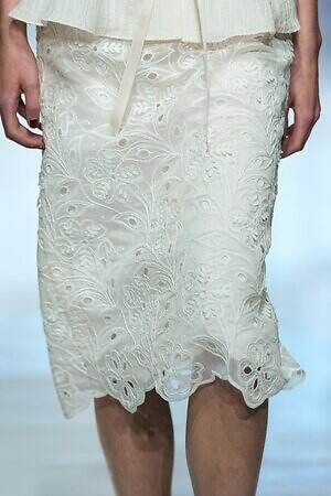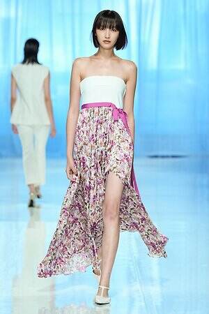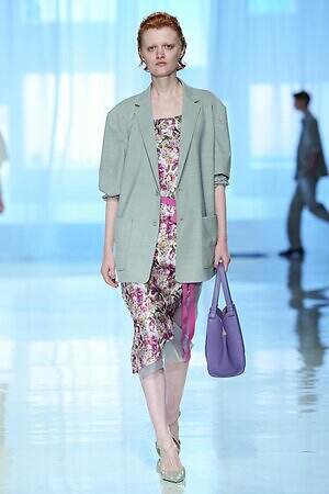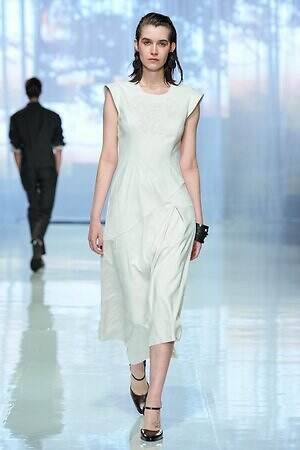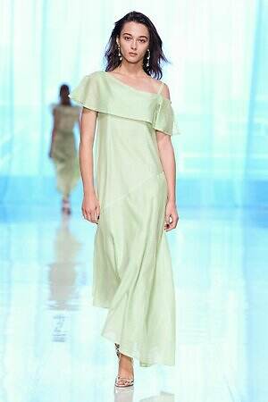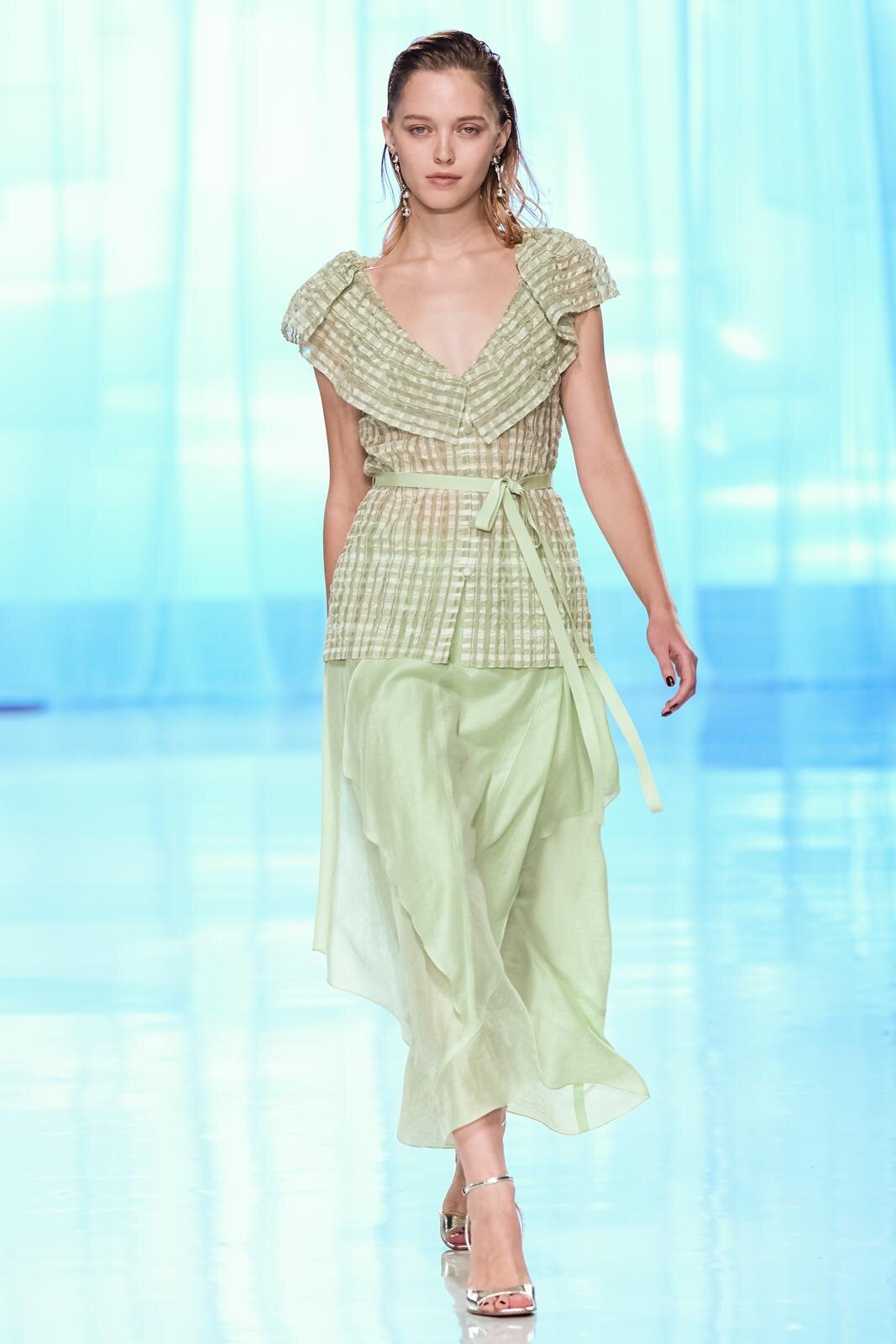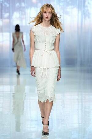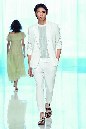 ランウェイ全体を通して、春夏らしい軽やかな素材を採用。透け感のあるオーガンジーやサテン、フラワー型刺繍を施したレース、ハリ感のあるコットンなど。また得意とするテーラードジャケットもリネンやレーヨンを用い、涼しげな印象にまとめていた。