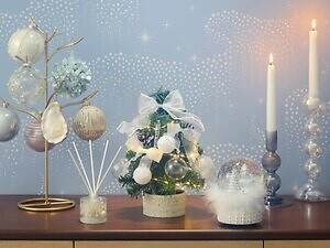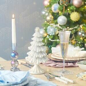 透明なガラスでできたプレゼントモチーフの小物入れや、泡が連なっているかのようなキャンドルスタンドはテーブルの飾り付けにぴったり。また、大きなリボンを飾ったクリスマスプレゼントを思わせるクッションも、部屋のクリスマスムードを一気に高めてくれそうだ。