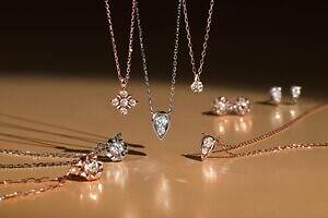 注目は、“自分自身を輝かせる”という想いを込めたハートモチーフのジュエリー「RETURN TO LOVE」。ランダムに配したダイヤモンドが、光を散りばめたようにきらめくネックレスが揃う。K18イエローゴールドのSサイズに加え、LサイズはK18イエローゴールドにプラチナプレートを組み合わせたデザインで、上品なコントラストが際立つ仕上がりとなっている。