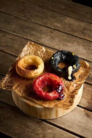 たとえばハンバーガーは、チーズをふんだんにふりかけてつくる「魔女のチーズバーガー」をはじめ、「魔女蜜バーガー」、「魔女のスモーキー バーガー」を用意。どこか不気味な雰囲気が漂う「魔女のオニオンリング」を添えて、ぜひ注文してみてほしい。
