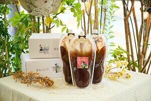 ハンバーガーのお供には、「魔女のちいさな森のハンバーガー」の代表であり、おのみもの研究家・魔女のかなっぺがつくるクラフトシロップ「魔女のコーラ」を使用したドリンクをチョイス。美容と健康に良いとされるハトムギやクコの実を配合し、サトウキビ由来100%の低GI糖で仕上げたやさしい味わいだ。可愛らしい瓶入り「魔女のコーラ」も販売しているので、自宅でも好みの飲み物と割って味わうことができる。