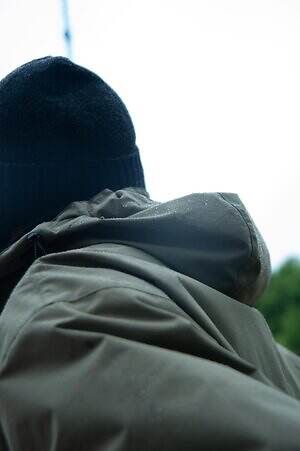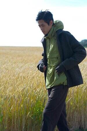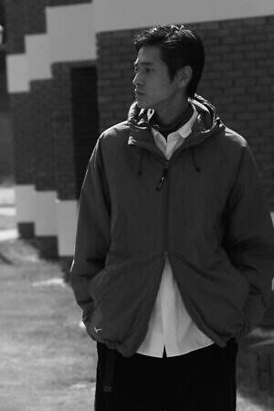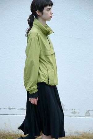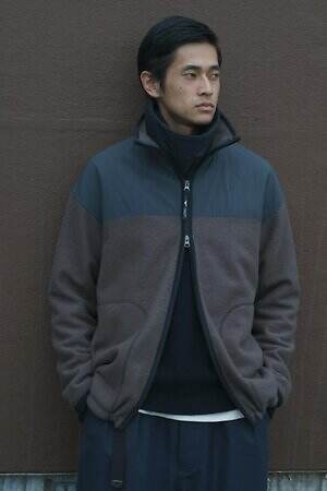 異素材を組み合わせたブルゾンも要チェック。ボディには、保温性や吸湿性などが期待できる高密度のウールジャージー素材、外襟とショルダーには、コットンのような風合いと耐久撥水性を兼ね備えたタスランナイロンを配した。裾のスピンドルを絞り、シルエットをアレンジして着用することもできる。