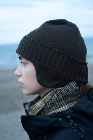 ウール100%の耳あて付きニット帽は、大きめリブの折り返しが目を引くデザイン。皮膚が触れる面にミズノ独自開発の吸湿発熱素材「ブレスサーモ糸」を採用しているため、高い保温性を発揮する。家庭で手洗いできるイージーケア仕様なのもうれしいポイントだ。