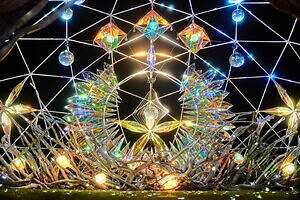 メイン会場となるのは、道の駅・みなかみ水紀行館に隣接する清流公園。ここでは、カラフルな色彩のアクリル板を用い、クリスタルや花、雫など多彩なオブジェを浮かび上がらせた、光のアート空間が広がる。