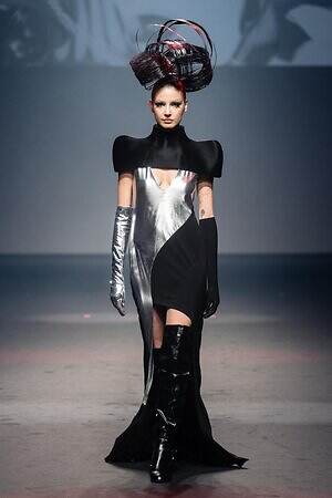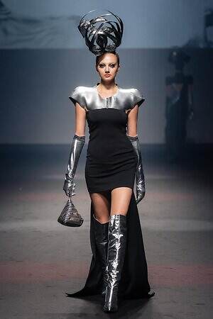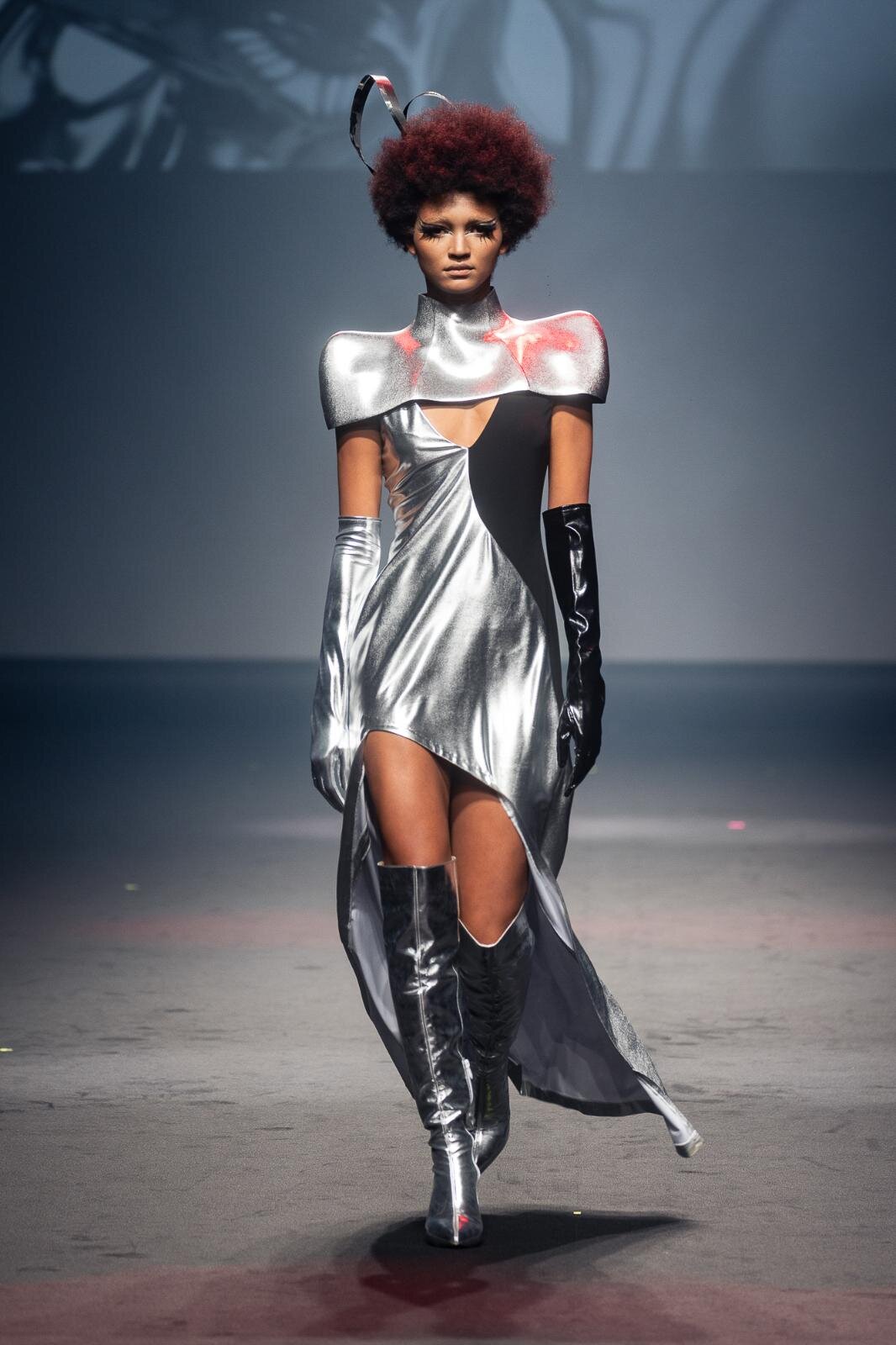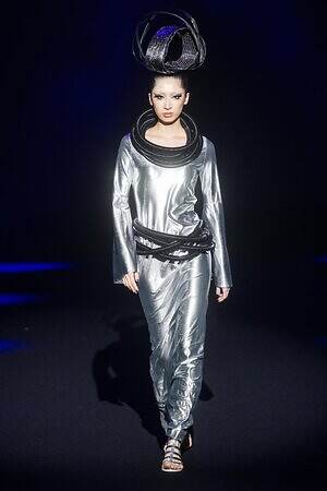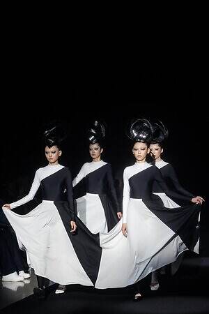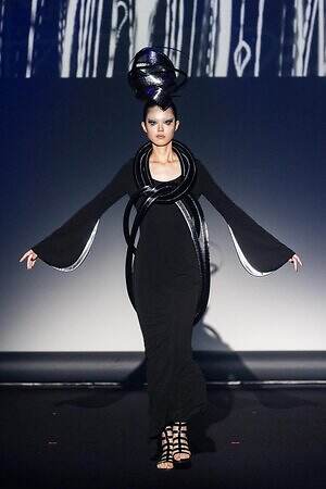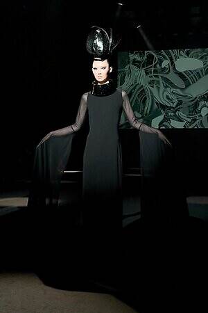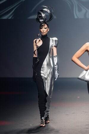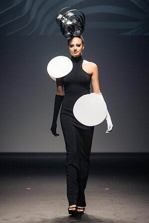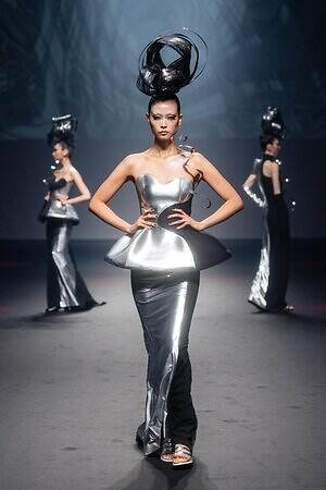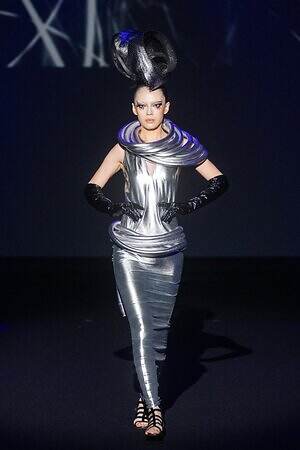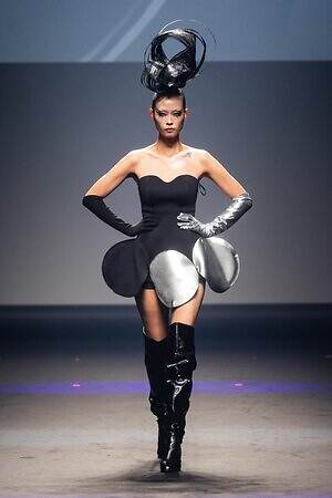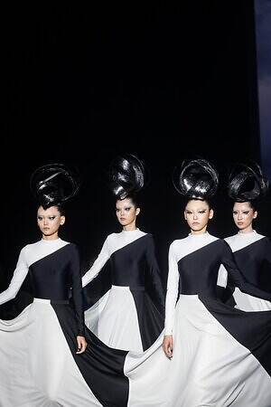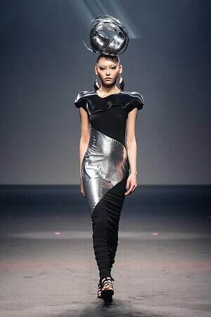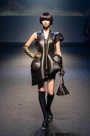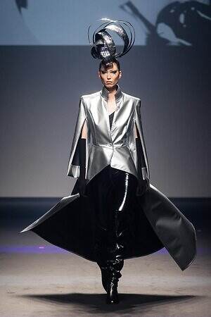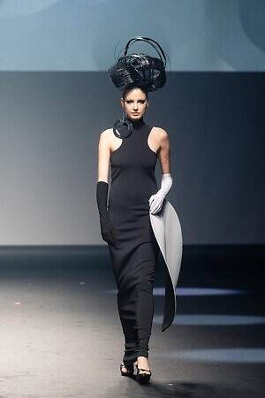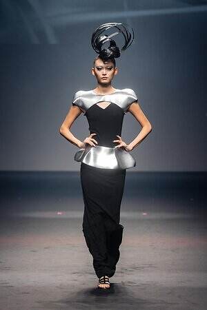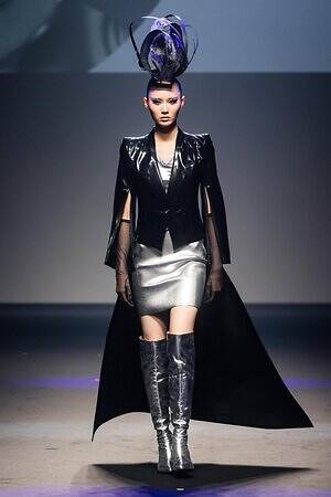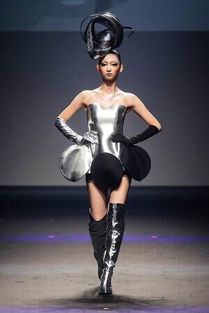 なお、イベントの前半では、ジュンコ コシノの最新コレクションが登場。タイトなフォルムと構築的なフォルムを組み合わせた近未来的なシルエットと、陰と陽を描くような切り返しデザインが印象的なウェアが次々と披露された。