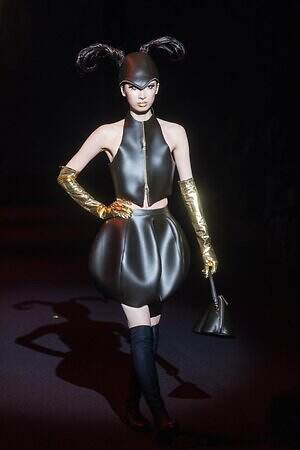 また、ユニークなディテールにも注目だ。「きのこの山」のチョコレート部分にそっくりなバッグや、頭にキノコが生えてきたかのようなヘッドピース、丸く立体的なポケットなどがアイキャッチ。まさに”きのこ尽し”のコレクションとなっている。