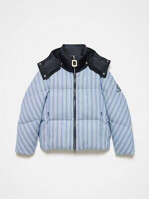 モンクレール(MONCLER)とJW アンダーソン(JW Anderson)によるコラボレーションダウンジャケットが登場。シャツをイメージし、ストライプ柄のコットンギャバジンを使用している。