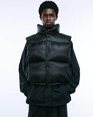 グラフペーパー(Graphpaper)のダウンベストは、ノーマル エキスパートとのコラボレーション。重ね着を想定した大きなアームホールと短めの丈が特徴で、暖かさを叶えるグースダウンを封入している。