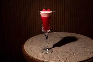 注目は、ブランドの頭文字 “L’O” を冠した5種類のカクテル。「L’O ピンクレディー」は、淡いピンクとホワイトのコントラストが印象的な一杯だ。繊細なドームが生み出す立体的なフォルムが華やかさを添える。ラグジュアリーな佇まいに、ブランドの世界観が映し出されている。