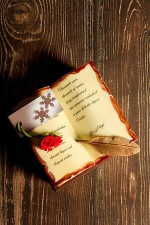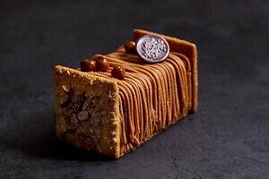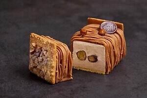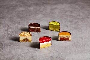 また、毎年人気を集める本型ケーキ「タリーナ」も要チェック。チョコレートで作った本の中には、右側に甘酸っぱいベリージュレを合わせたピスタチオ&マスカルポーネ、左側にほんのりビターなキャラメル&ショコラのクリームやスイーツをレイヤード。食べ進めるごとに、異なる味わいや食感を堪能することができる。