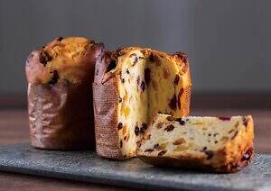 自家製酵母種を使用した風味豊かな生地と‟ごろごろ”ドライフルーツが相性抜群の「パネトーネ」も用意する。
