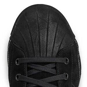 スニーカーは、「Y-3 ニッツァ(NIZZA)」をベースにしたローカットモデルとハイカットモデルが登場。アディダス(adidas)の「スーパースター(Superstar)」の要素も融合させたローカットシューズ「「Y-3 ニッツァスター」は、シュータン部分にコラボレーションロゴを配してアクセントをプラス。ブラックでまとめたシューズに、ホワイトのロゴが映える。