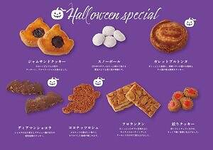 ぴよりんを模ったクッキーにブルーベリージャムをサンドした「ジャムサンドクッキー」はそのままに、発酵バターとラム酒が香る「ガレットブルトンヌ」はジャックオーランタン、ほろ苦い味わいの「ディアマンショコラ」はコウモリ、香ばしい「ココナッツロシェ」はおばけをモチーフにした、遊び心たっぷりのハロウィン限定デザインにチェンジ。
