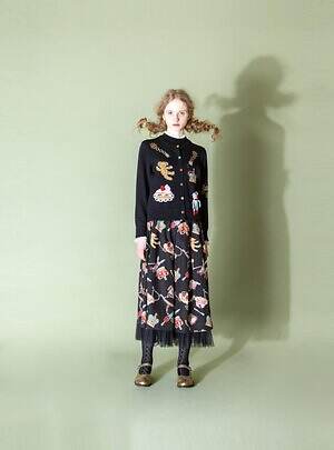 ポケットにウサギのぬいぐるみを忍ばせた「ザ トイボックス プレシャスカーディガン」も。フロントにはテディベアやショートケーキ、クラウンなどを編み込み、遊び心あふれる世界観を表現した。背面には、“心からの感謝を込めて”を意味する“WITH HEARTFELT GRATITUDE”のメッセージを配している。