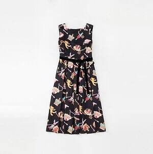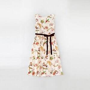 注目は、「ザ トイボックス スクエアドレス」。ティーカップやクラウン、ウサギのぬいぐるみなど、おもちゃ箱を思わせるモチーフを散りばめた華やかなプリントが目を引くワンピースだ。ウエストにはパールチェーン付きのベルベットリボンをあしらい、ノスタルジックな雰囲気の中にも上品なアクセントを添えた。
