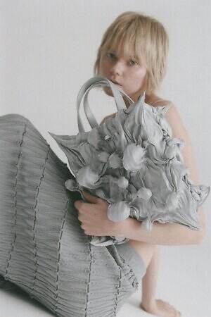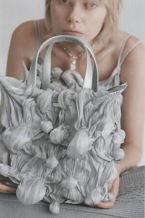 2年ぶりとなる新作バッグは、水が地面にこぼれ落ち、放射状に広がった時のエネルギーの発散性に着想を得た独特の形状が魅力。エネルギーや生命力を感じられるような、有機的なデザインに仕上げた。