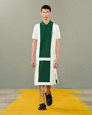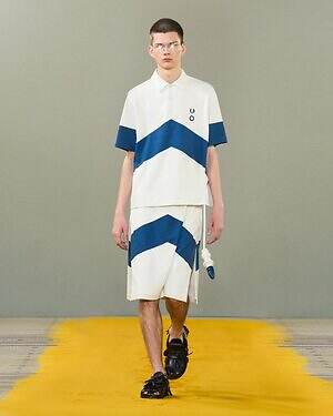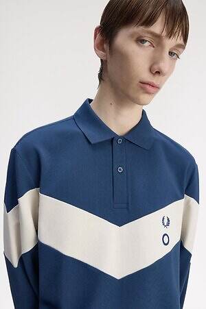 そのほか、シェブロンの切り替えデザインを配したポロシャツや、大胆なストライプを編みで表現した長袖ポロシャツも登場。コーディネートの主役となりそうな、存在感あるウェアが揃う。