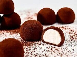 ミルクの風味がリッチに感じられる生チョコは、口に入れるととろ~りとろけて、優しい甘さを口いっぱいに楽しめる。