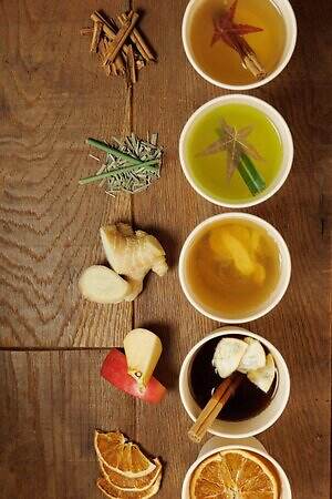 加えて、会場では創業200年以上の老舗茶舗・福寿園とのコラボレーションによる「観月茶(かんげつちゃ)」体験も楽しめる。「観月茶」体験では、「新月」「半月」「満月」をイメージした3つの香りから好きな香りのお茶をセレクトして味わうことができる。ラインナップは、ドライフルーツやスパイスなどを組み合わせた12種類。お茶の香りや味、視覚を通して、京都の茶文化と観月の心を感じられる体験となっている。