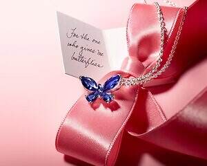 2枚の羽がセットになったバタフライチャームは、キュービックジルコニアが煌めく繊細な仕上がり。表面のブルーエナメルが、幻想的なムードを演出している。ギフトとしてはもちろん、大切な人とのペアで使うのもおすすめだ。