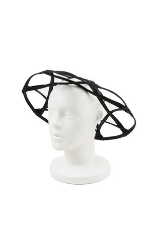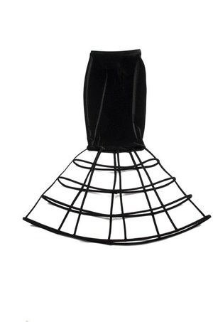 人体の構造に注目した、ボディコンシャスで幾何学的なデザインが特徴の本ブランドは、ヘッドピースやアクセサリーなど構築的なアイテムを展開する。Coil Skirtは造形が独特なマキシ丈のスカート。コルセット芯が多く使用され、立体的なフォルムが印象的な一着。