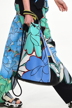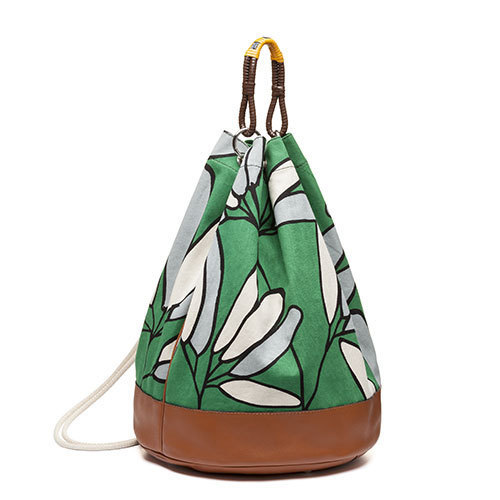 2006年にも登場したアーカイブ柄“CANDLE STICK”のアイコニックな花柄をプリントしたラックサックはオススメ。春らしい鮮やかなカラーリングと、全てハンドメイドで施された、レザーの革巻きハンドルがポイント。リュックとショルダーの2WAYで使用できる。