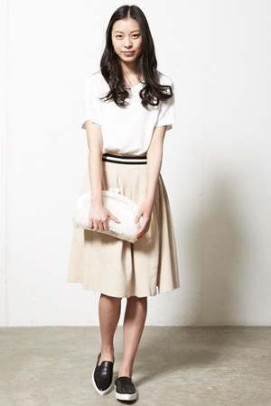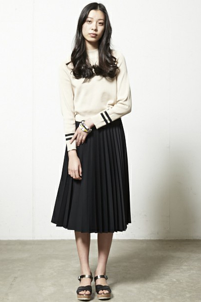 アカネ ウツノミヤからは、ライン入り「クロップドニット」と「ウエストラインプリーツスカート」が発売中だ。ニットのコンパクトで女性らしいシルエットは、少し高めに設定されたネックがポイントで、袖部分のラインがスポーティな春らしい雰囲気を引き立てている。スカートもニット同様に、ラインがほどこされ軽快な仕上がりに。活動的で爽やかなこの2つのアイテムをセットアップでの着用もオススメだ。