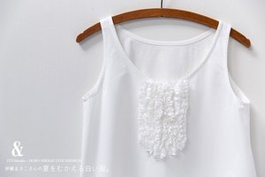 スタイリストの伊藤まさことコラボレートして作る服は1年ぶりとなるが、今回テーマに選んだのは「白い服」。暑い日本の夏に、まっさらな感じ、ふわりとした軽さ、さらりとした着こなし、きちんとした女性らしさ、といったものを感じさせる服が出来上がった。
