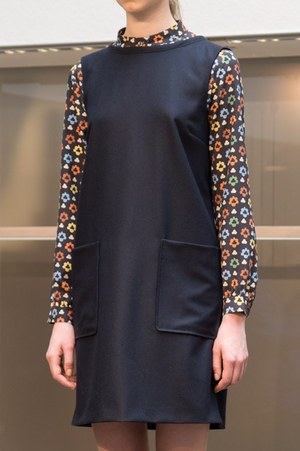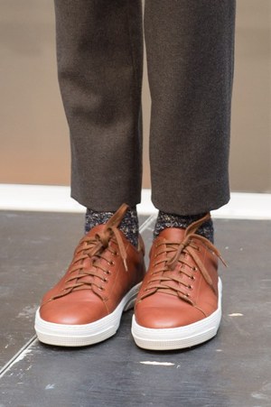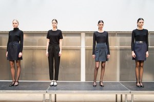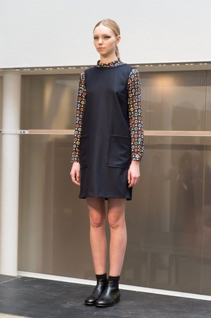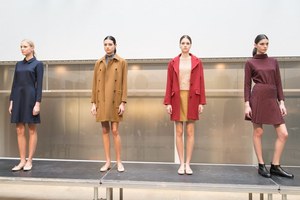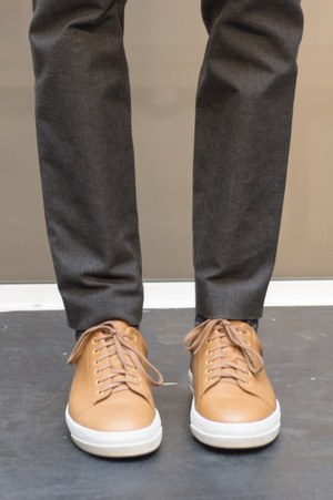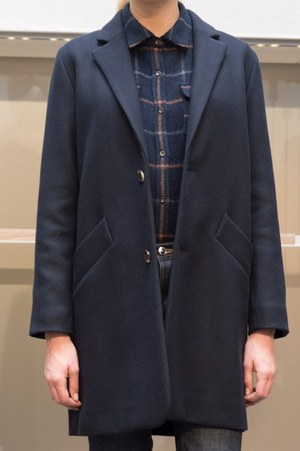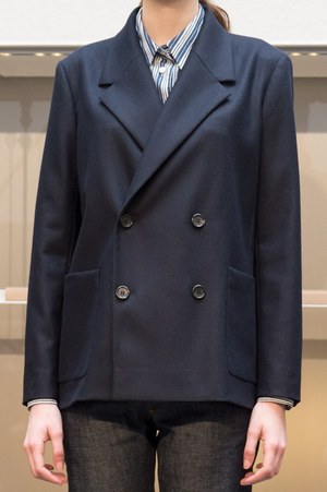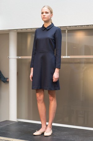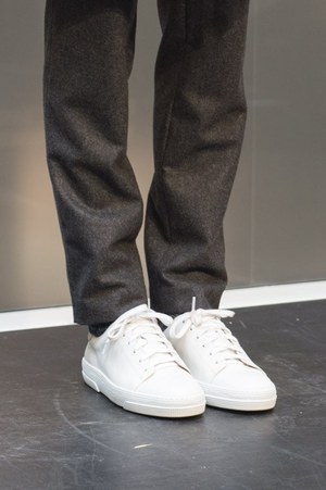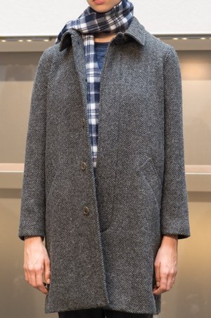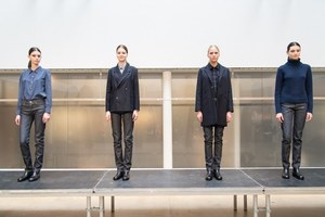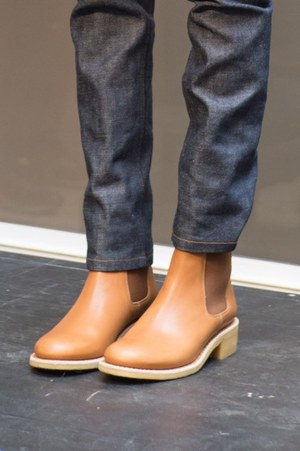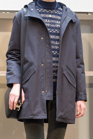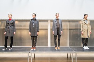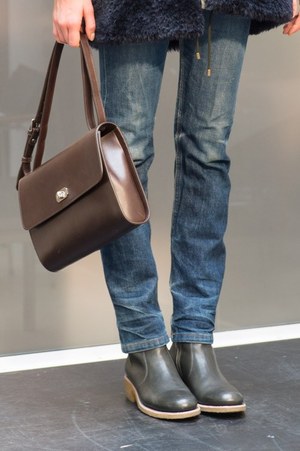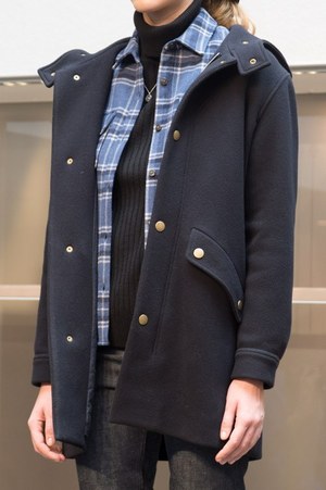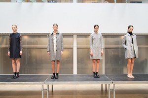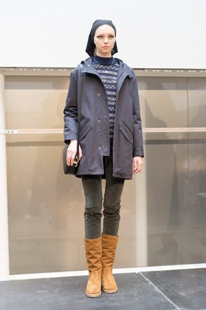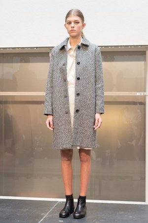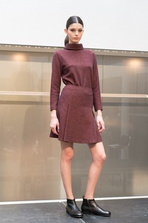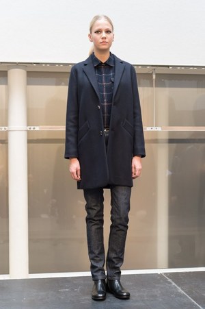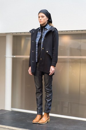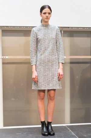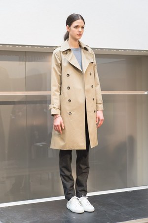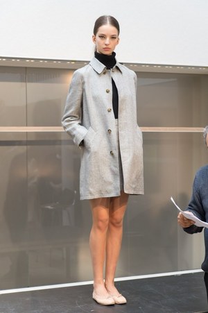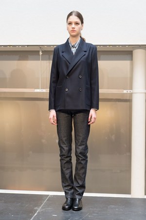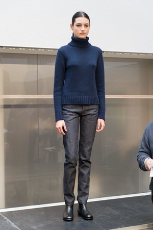 日本で荷物を無くしたことをきっかけに、広島の工場でデニムをつくりはじめたという、デザイナーのジャン・トゥイトゥ。そのルーツに立ち返るように、生デニムのジーンズを主役にしたスタイルも登場する。アクセサリーはつけず、ネイビーのニットやドレス、ジャケットなどを合わせた、シンプルな出で立ちで。さらにミニマリズムを表現したというパートでは、トレンチコートやヘリンボーン生地のコートを、シンプルなスニーカーと合わせた。ジャン曰く「変化への反抗」。オーソドックスで気張らないスタイルが披露される。