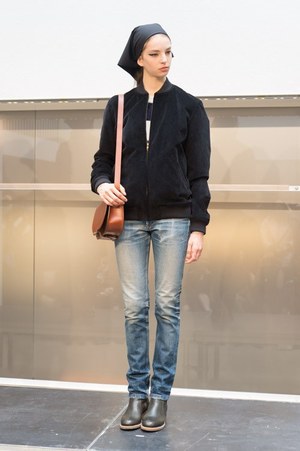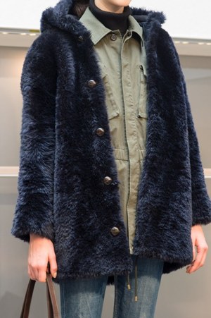 まず一つ目のキーワードとなったのが「ミリタント(Militant)」。闘争といった意味で使われる言葉だが、今回はとりわけ70年代に各国で高まった、女性権利運動がイメージソースだという。頭には、その時代を表すようなブラックのスカーフ。リュクスなファーコートもある一方、細身のデニムにマウンテンパーカー、ブルゾンなどを合わせ、ミリタリーのエッセンスも取り込まれていった。