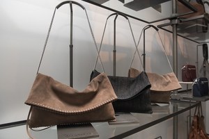 ウィメンズのバイカージャケットは、異素材ミックスやロング丈など種類多様。肩部分のキルティングデザインもポイントになっている。上質なラム素材を使用しながら、軽く柔らかいため着心地が良い。ほかにも独特のシルエットを持つドレス、ニットやカットソー、デニム等を展開する。バッグは、ビジネスに使えそうな大きいサイズから、ボヘミアンテイストのハンドバッグまで登場。