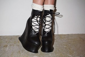 重厚感のある「ラウンド ダンス ブーツ」からは、ブラックとワインの2色が登場。また、レースアップタイプ「ボンデージ ブーツ」は、素足やストッキングに合わせてラグジュアリーに、靴下と合わせて毒気のある少女風に、と装いに合わせて様々なコーディネートが楽しめる。