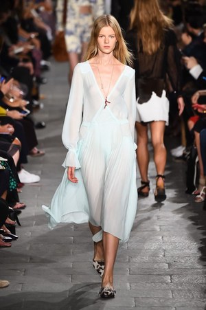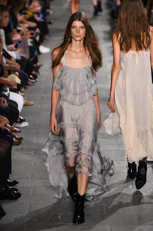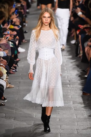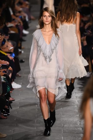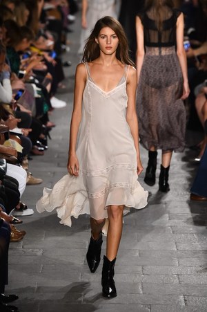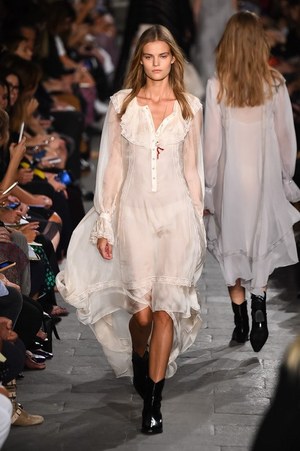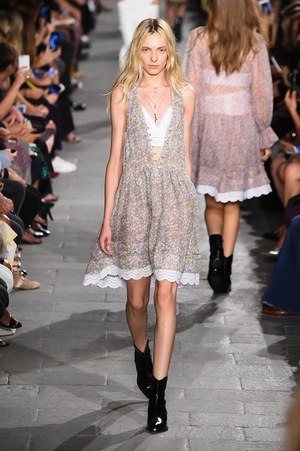 コレクションは1800年代、アメリカ西部風のアイテムが満載。色褪せたようなゆったりとしたドレスや、牛の模様をそのまま使ったレザースカートとフリンジ付きジャケット、デニム調のオーバーオールなど、素材感にこだわったアイテムばかりだ。また、レースを用いたインナーやトップス、スカートなども展開し、カウボーイならぬ、“カウガール”風にフェミニンなスタイルに仕上げている。