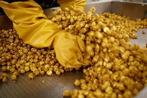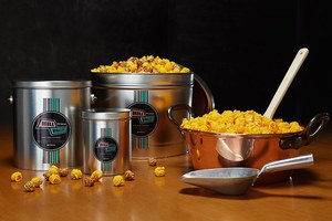 青山店は、中目黒店に次ぐ路面店で、黒と白を基調にしたタイリッシュな空間が特徴。オープンと同時に、ポップコーンにクッキーやナッツを加えたスナック「グルメポップコーン アンド」を発売。軽やかな食感の定番ポップコーンに、様々な食材や菓子をプラスし、これまでにない味わいと食感を生み出した。