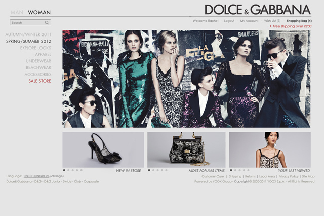 2011年7月13日、イタリアを代表するブランド「ドルチェ&ガッバーナ(DOLCE&GABBANA)」がECサイトをオープンした。このECサイトはイタリア語や英語だけでなく日本語も含めた7つの言語に対応し、日本への郵送も可能となっている。