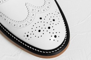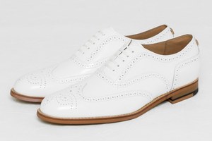 こんなエッジの効いたトラッドシューズは、ソックスと組み合わせてみて。ボディカラーとあわせて、ホワイトソックスをセレクトすれば、統一感のあるコーディネートへと導いてくれる。ときには、鮮やかなカラーソックスを差して、遊びの効いた足元を楽しんでみるのもオススメだ。